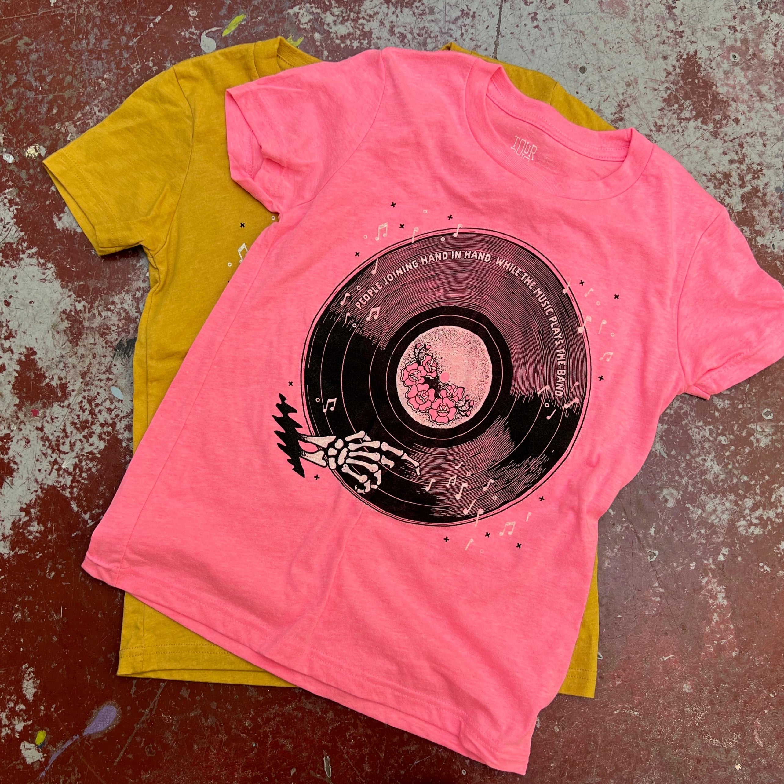 • Bubble Gum and Mustard short sleeve Bella + Canvas youth tees