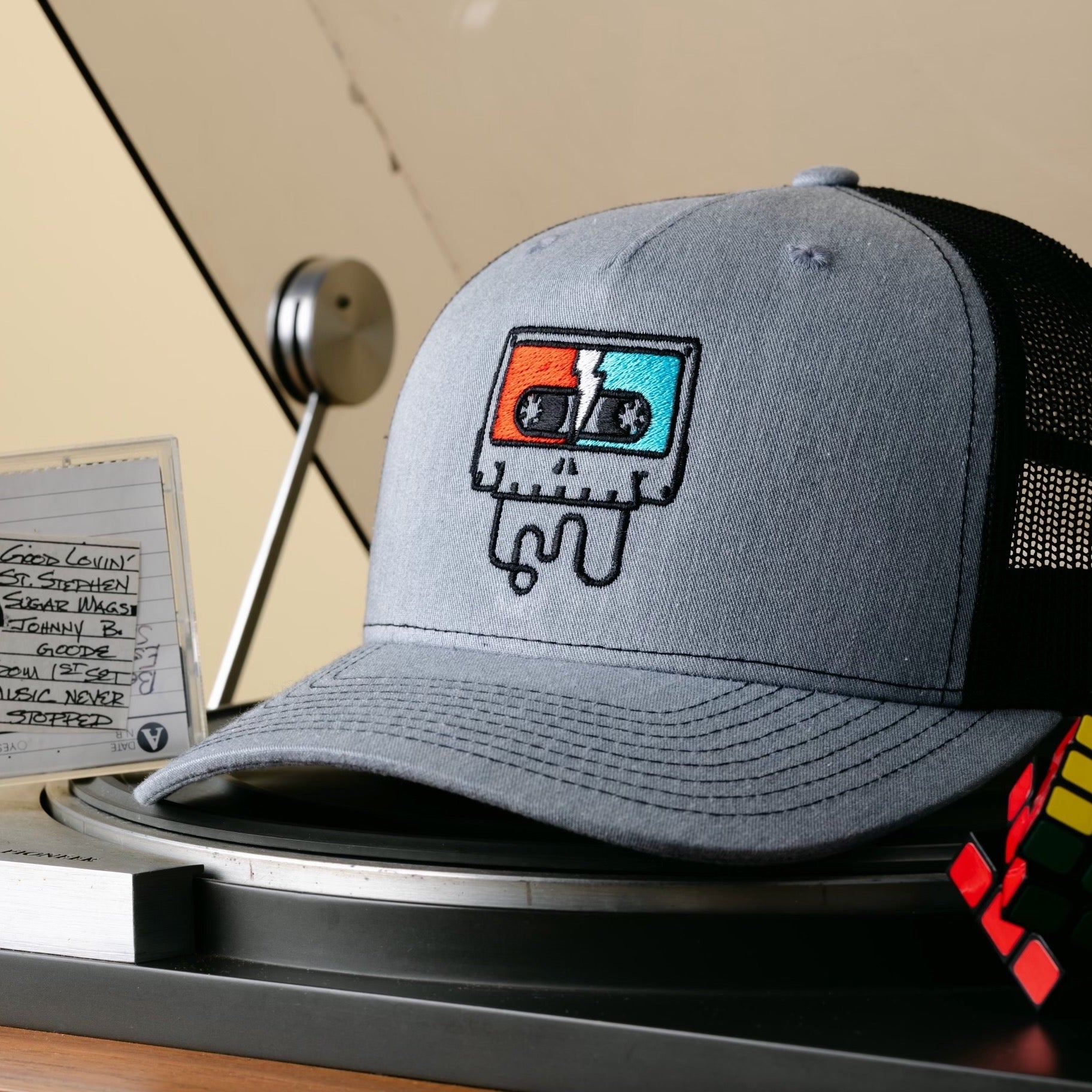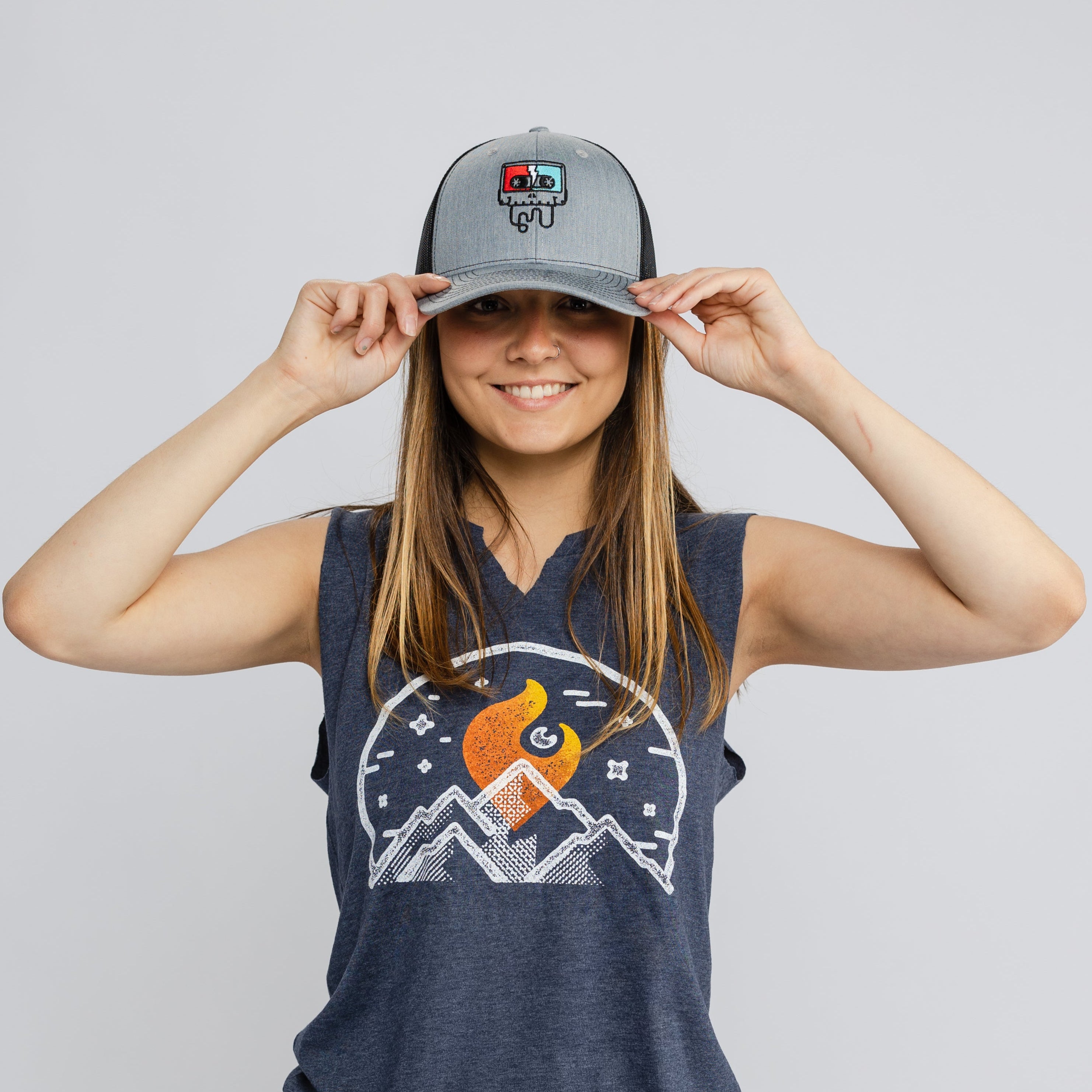 - Richardson gray front/black mesh back Trucker Hat